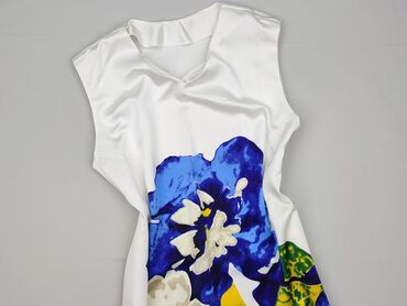 Bluzka bez rękawów – żółta w abstrakcyjny, kwiatowy nadruk - Krój: luźny, prosty top z okrągłym dekoltem - Długość: do bioder - Wzór: malarski, abstrakcyjne kwiaty i listki w odcieniach żółci, bie...