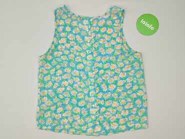Bluzka bez rękawów w kwiaty - Krój: prosty, lekko trapezowy, bez rękawów - Dekolt: okrągły, z krótką listwą guzikową (3 guziki) - Wzór: duży, malarski print kwiatowy w odcieniach turkusu, niebiesk...