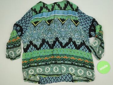 Bluzka damska MULTI WEAR, rozmiar XL. - Zwiewny materiał w barwny, paisley’owy nadruk: odcienie fioletu, pomarańczu, żółci i zieleni na jasnym tle. - Dekolt w serek z krótką listwą guzikową i delik...