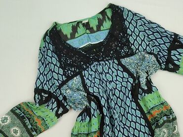 Bluzka damska Åshild, rozmiar 42 - Fason: luźniejszy, z marszczeniem w talii i przy mankietach, rękaw 3/4. - Dekolt: okrągły z krótkim rozcięciem i wiązaniem/sznureczkiem. - Wzór: paisley/ornament...