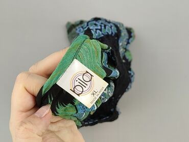 Bluzka damska z długim rękawem, rozmiar XL (metka: Halubka). - Krój: prosty, z dekoltem w kształcie litery V. - Kolorystyka: czarno‑turkusowa, asymetryczne łączenie paneli. - Detale: trzy czarne, o...