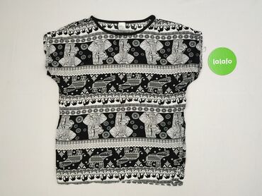 Bluzka damska z krótkim rękawem, rozmiar XXL. - Fason prosty, luźny, z okrągłym dekoltem. - Tkanina lekka i miękka, przyjemna w dotyku. - Wyrazisty, patchworkowy nadruk: połączenie motywów zwierz...