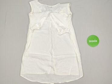 Biała ażurowa bluzka/tee z krótkim rękawem - Krój: luźny T‑shirt z dekoltem w serek (V-neck) - Warstwowa konstrukcja: wierzch z ażurowej, koronkowej siatki; pod spodem gładka, nieprześwitująca pod...