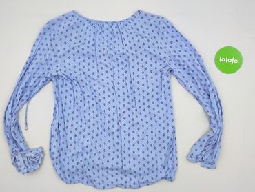 Bluzka damska Blue Motion, rozmiar M (na metce: 40/42). - Wzór: geometryczny, biało‑granatowy (drobne rozetki) - Krój: luźny, taliowany gumką/ściągaczem u dołu - Rękawy: długie, lekko marszczone ...