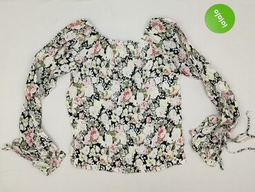Bluzka damska H&M Divided - Rozmiar: EU 38 (US/CA 8, CN 165/84A) - Skład: 100% wiskoza – lekka, oddychająca tkanina - Kolor/pattern: czarne tło w kwiatowy wzór (różowe i niebieskie kwiaty) - Krój:...