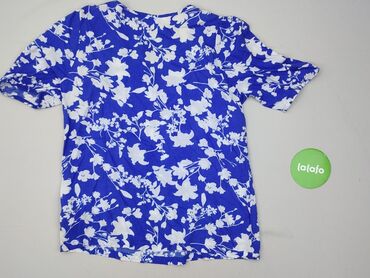 Bluzka damska BODYFLIRT - Rozmiar z metki: EU 42 (GB 16, FR 44, IT 48) - Skład: 100% wiskoza - Wzór: kwiatowy, kolory niebieski/granatowy/biały - Fason: kopertowy efekt z delikatnym marszczeniem z...