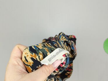 - Wzór: wyrazisty print etniczny/ikat na czarnym tle w kolorach: musztardowy, niebieski, turkusowy, różowy, ecru
