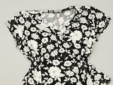 Bluzka damska YSHOW - Krój: luźny, nietoperz/dolman z krótkim rękawem - Dekolt: okrągły - Przód: czarno-biały nadruk w duże kwiaty - Tył i lamówki: turkusowe - Materiał: cienka, przewiewna dzianin...Stan: