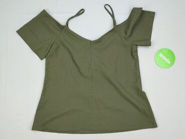 Bluzka damska Boohoo z długim rękawem, z wycięciami na ramionach (cold shoulder). - Kolor: melanżowa zieleń/khaki - Krój: lekko dopasowany, półokrągły dekolt, zaokrąglony dół - Rozmiar z metki: UK ...