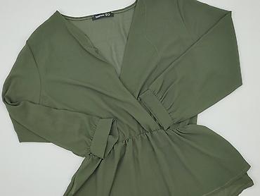 - Krój: kopertowy przód z dekoltem w serek, odcięcie i delikatna gumka w pasie podkreślająca talię, lekko rozkloszowany dół typu peplum