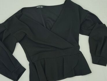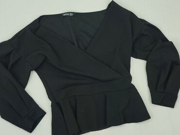 Bluzka damska Boohoo z wiązaniem - Marka: Boohoo - Fason: kopertowy (wrap), wiązanie w pasie, lekko rozkloszowany dół peplum - Rękawy: długie, lekko rozszerzane - Dekolt: w kształcie V - Kolor: pu...