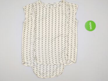 Bluzka damska CALLIOPE, rozmiar M. - Fason: dopasowany, z długim rękawem - Dekolt: szeroki/łódka, lekko opuszczany na ramiona - Wzór: gęsta czarno-biała geometria (romby/strzałki), all-over - Mate...Stan: