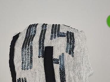 - Przód: aplikacja z czarnych wszywek i cekinów w odcieniach grafitu/srebra, układ graficzny