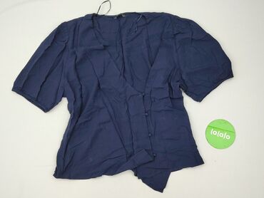Granatowa bluzka damska H&M - Rozmiar: EUR 44 / UK 14 / US 14 (na metce także 175/100A) - Fason: luźna koszulowa, bez kołnierzyka, dekolt w serek z krótką listwą guzikową (3 guziki z przodu) - Ręk...