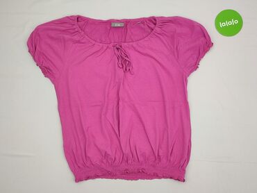 Bluzka damska Promod – różowa/fuksja - Marka: Promod - Krój: luźny, z marszczeniem pod dekoltem i przy dole (gumka) - Rękaw: krótki, lekko bufiany - Dekolt: okrągły, elastyczny karczek z ozdobnym ...Stan: