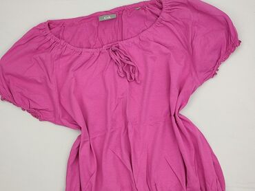 Bluzka damska Promod – różowa/fuksja - Marka: Promod - Krój: luźny, z marszczeniem pod dekoltem i przy dole (gumka) - Rękaw: krótki, lekko bufiany - Dekolt: okrągły, elastyczny karczek z ozdobnym ...