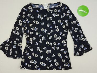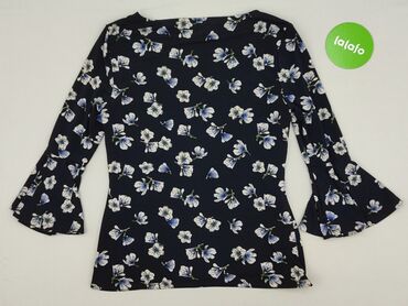 Bluzka damska w paski, rozmiar S. - Marka: Blue Pate (etykieta na zdjęciu) - Kolor: granatowy z białymi pionowymi paskami - Skład materiału: 50% bawełna, 50% poliester (metka) - Krój: lekko rozklo...