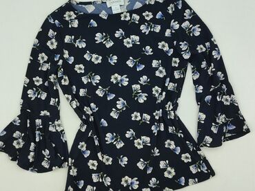 Bluzka damska w odcieniach błękitu i granatu, zdobiona kwiatowym wzorem. Charakteryzuje się luźnym krojem i marszczeniami, które nadają jej lekkości. Dekolt typu carmen, elastyczny, pozwala na nosz...Stan: