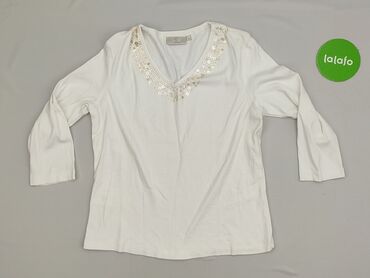 Biała damska bluzka z rękawem 3/4 - Klasyczny krój z okrągłym dekoltem - Długość rękawa: 3/4 – wygodna na co dzień i do pracy - Materiał: lekka, miękka dzianina bawełniana z dodatkiem elastycznych...Bluzka damska CC Petite, rozmiar S.
