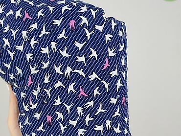 - Wzór: granatowe tło w drobne prążki/kropki, na nim motyw jaskółek – białe i różowe akcenty
