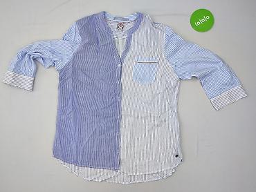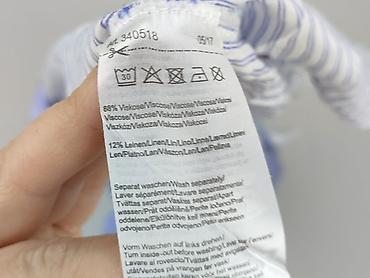Świetna na co dzień do jeansów lub spódnicy; dzięki lekkiej mieszance wiskozy i lnu idealna na cieplejsze dni. Rozmiar z metki: L. Kolory: błękit/niebieski/biel w paski.