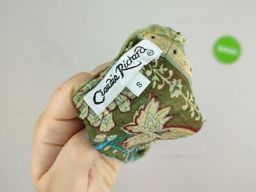 Kobieca bluzka w kwiaty z lekkiej, półprzezroczystej tkaniny. - Wzór: drobne kwiaty w odcieniach czerwieni, bieli i oliwkowej zieleni na ciemnym tle - Krój: dopasowany, z zakładkami modelującymi t...Stan: