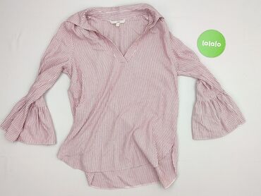 Bluzka damska C&A Clockhouse - Rozmiar: 36 (metka widoczna na zdjęciu) - Wzór: niebiesko-białe, cienkie paski - Krój: luźniejszy, lekko wydłużony tył - Rękawy: długie, zakończone marszczeniem/falb...Stan: