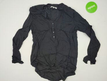 Czarna bluzka damska CLOCKHOUSE - Fason: luźny top z elastycznym ściągaczem u dołu - Rękawy: krótkie, szerokie falbany z półtransparentnej, lekko plisowanej tkaniny - Dekolt: półokrągły z delikatn...