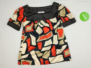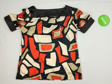 - Wzór: geometryczny, abstrakcyjny print w kolorach czarnym, beżowym i pomarańczowo‑czerwonym.