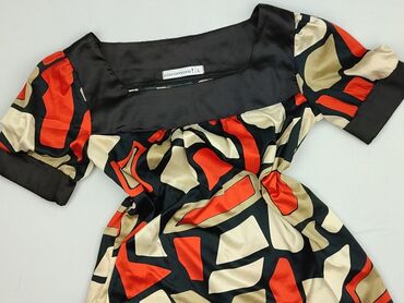 - Krój: luźny, lekko rozszerzany, odcinany pod biustem; dekolt kwadratowy.