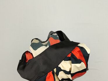- Materiał: tkanina o satynowym połysku (miękka, śliska w dotyku); gładka czarna w partii karczka i mankietów, korpus z nadrukiem.