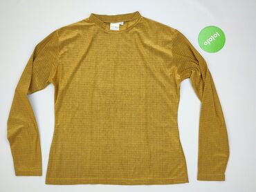 Bluzka damska z długim rękawem, rozmiar L. - Wzór: musztardowe tło z białymi, geometrycznymi kropkami/rombkami. - Fason: zapinana z przodu na guziki, delikatnie taliowana, zaokrąglony dół. - ...