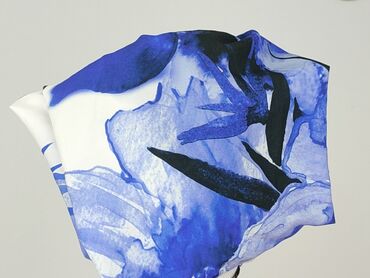 Bluzka damska z kołnierzykiem, zapinana na guziki, z krótkim rękawem (cap sleeves). Taliowany krój podkreślający sylwetkę. Wzór: kwiatowy na czarnym tle – odcienie niebieskiego, turkusu, żółtego i...