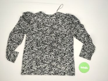 Długi rękawCzarno-biała bluzka damska marki F&F, charakteryzująca się wzorzystym nadrukiem przypominającym zwierzęce motywy. Bluzka ma okrągły dekolt i długie rękawy z delikatnymi bufkami przy ramionach, dodającymi jej elegancji. Elastyczny materiał zapewnia komfort noszenia i dobre dopasowanie do sylwetki. Idealna do stylizacji codziennych, jak i na bardziej formalne okazje.
