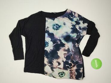 Bluzka damska z długim rękawem, rozmiar XL. - Kolor: czarne tło z wielobarwnym, kwiatowym nadrukiem w okręgach. - Fason: luźniejszy, długość za biodra; rękawy 3/4–długie; okrągły dekolt. - Materia...