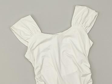 Bluzka damska F&F - Kolor: biały - Krój: luźny, z elastyczną talią/karczkiem z przodu; dekolt w kształcie kwadratu, wiązanie na troczek z przodu - Rękawy: krótkie, bardzo bufiaste z gumką przy man...