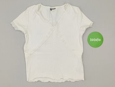 Biała bluzka damska z krótkim rękawem i koronką - Kolor: biały - Fason: luźny, lekko marszczony na dole i przy dekolcie - Dekolt: szeroki, z elastyczną gumką (można nosić klasycznie lub opuszczoną...