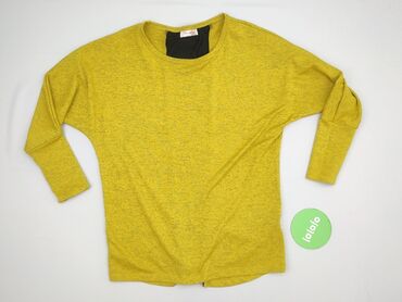 Bluzka damska w kolorze musztardowym - Krój: luźny, lekko pudełkowy - Dekolt: okrągły - Rękawy: 3/4, szerokie z delikatnym marszczeniem przy główce - Długość: do bioder, przód minimalnie krótszy n...