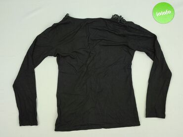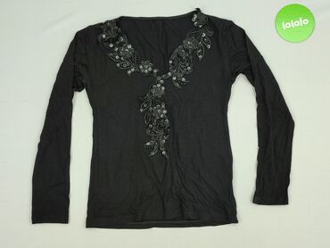 Czarna bluzka damska François Perrin Collection, rozmiar 40. - Dekolt zaokrąglony. - Rękaw 3/4. - Przód obficie zdobiony srebrnymi cekinami układającymi się w efekt ombré; tył gładki. - Materia...