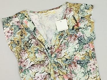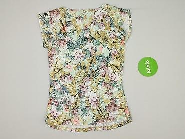 Bluzka damska z krótkim rękawem, rozmiar M. - Wzór: miks kwiatów, paisley i drobnej „panterki” w odcieniach różu, bieli, czerni i zieleni. - Dekolt: szeroki, zaokrąglony. - Fason: lekko dopas...