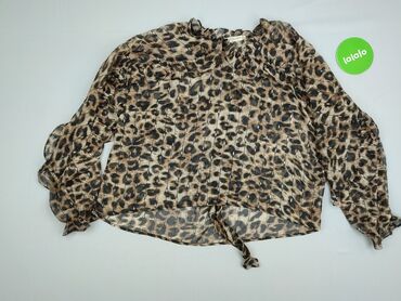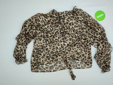 Bluzka damska Reserved - Model: bluzka z długim rękawem - Rozmiar z metki: EU 38 (UK 10) - Wzór: cętkowany/zwierzęcy, czarny nadruk na karmelowym/brązowym tle - Krój: lekko dopasowany, bufiaste rę...