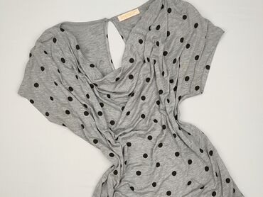 Krótki rękawSzara bluzka damska w czarne kropki – ebelieve, rozmiar M/L