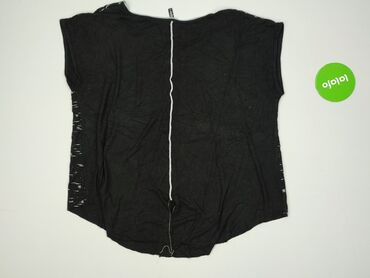 Bluzka damska EDAN, rozmiar 38. - Wzór: pionowe pasy w kolorze czarnym i białym. - Krój: luźny, lekko opadające rękawki, krótkie rękawy. - Dekolt: w kształcie litery V z małym nacięciem. - Dół: del...