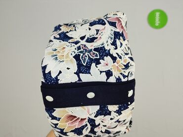 - Wzór: kwiatowy, wielobarwny na granatowym tle (odcienie bieli, różu, beżu)