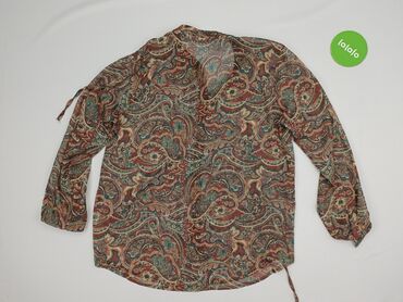 Bluzka damska OKAY, rozmiar 40 - Wzór: orientalny paisley, wielobarwny (brązy, rudości, błękity, ecru) - Fason: dopasowujący się do sylwetki dzięki marszczeniom/gumkowaniu na całej długości; dół o...