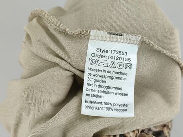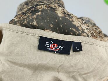 Bluzka damska w zwierzęcy print (panterka) - Krój: luźny, z krótkim rękawem, zaokrąglony dół - Wzór: czarne i brązowe cętki na jasnym tle - Materiał: 100% wiskoza (informacja z metki) - Tkanina lek...Bluzka damska Enjoy Womenswear, rozmiar L