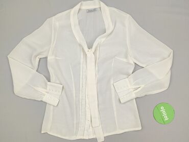 Bluzka damska, biała, z długim rękawem - Klasyczny krój z okrągłym dekoltem - Z tyłu rozcięcie w kształcie łezki zapinane na guzik - Mankiety zapinane na trzy guziki - Gładka, lekko lejąca tkanina...