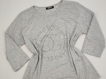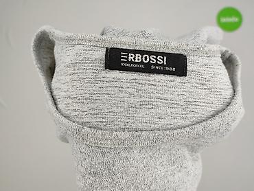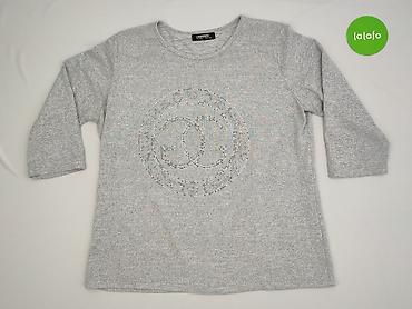 Damska bluzka z dzianiny, szara w drobne poziome prążki. - Fason: luźny, lekko rozszerzany do dołu (A-line), z zaokrąglonym dołem. - Dekolt: w kształcie litery V. - Rękaw: długi. - Materiał: miękk...