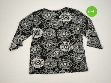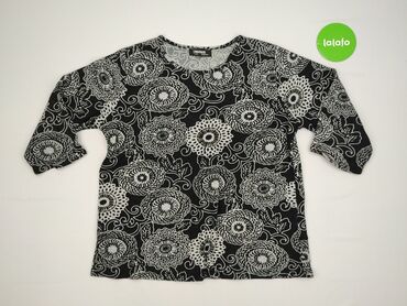 Bluzka damska z długim rękawem, rozmiar XL. - Kolor: czarne tło z wielobarwnym, kwiatowym nadrukiem w okręgach. - Fason: luźniejszy, długość za biodra; rękawy 3/4–długie; okrągły dekolt. - Materia...