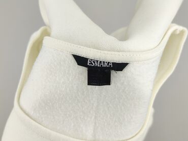 Bluzka damska marki Esmara w kolorze białym, ozdobiona abstrakcyjnym wzorem w odcieniach różu i szarości. Charakteryzuje się okrągłym dekoltem i rękawami o długości 3/4. Wykonana z materiału zawier...